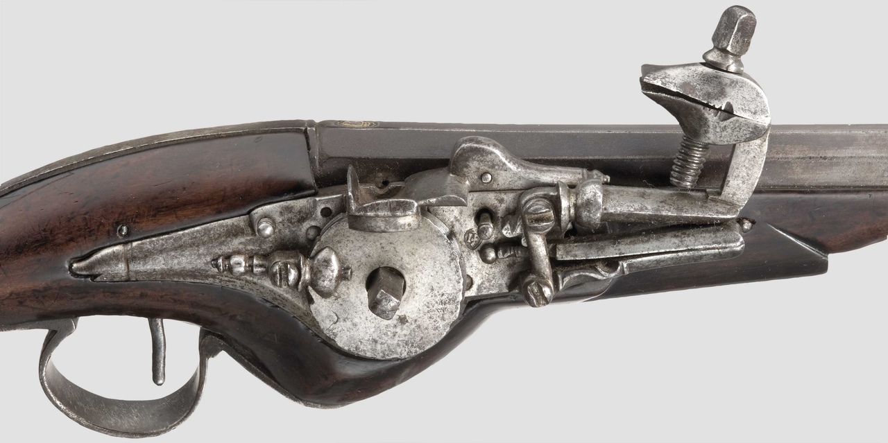 Нет, тут кажется механика повеселее Затравка на полочки засыпается заранее и закрывается сдвижными крышечками. В процессе спуска толкатель за специальный выступ сдвигает крышечку, давая доступ искрам. Пластинчатые пружины, возможно, дополнительно прижимают крышечку, чтобы ничего не просыпалось и не открылось раньше времени. То, что выглядит тягой - это и есть толкатель, прижатый к крышечке специальной направляющей планкой, приделанной снизу к кресалу.